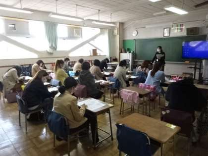 2学年合同「保護者全体会」に続いて、各学年、各学級に分かれて話をします。