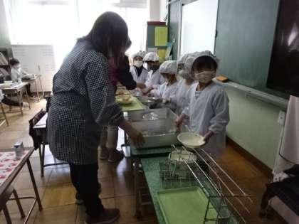 ごはん、おかず、牛乳等、自分の担当を責任をもって行います。
