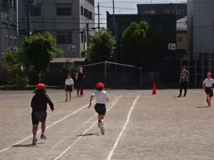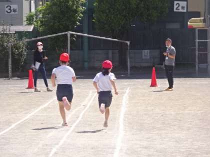 50M走のタイムを計測しています。