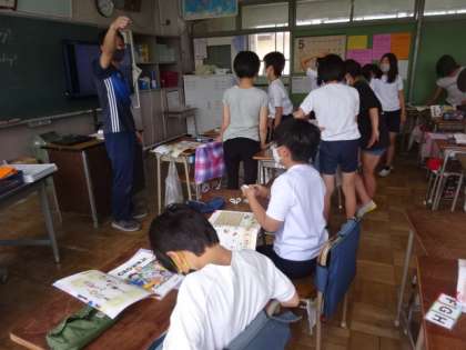 5年生の担任がそれぞれ自分の学級と相手の学級を指導します。