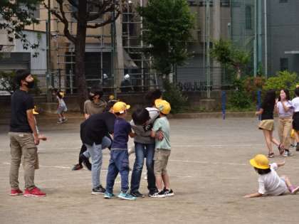 校庭では鬼ごっこ、ボール投げ等、子供たちは思い思いに体を動かします。