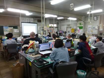 全教職員で「研修動画」を見ます。