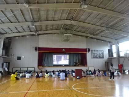 体育館と教室の様子です。