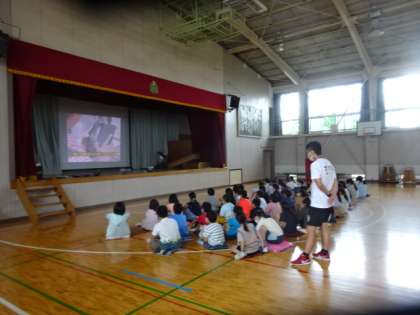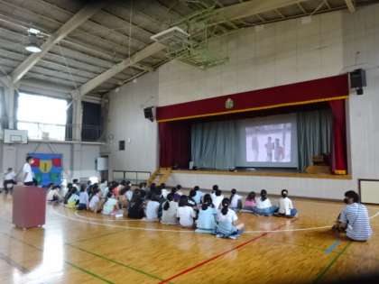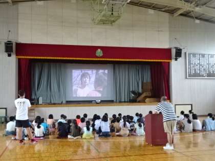 体育館で映像を見る学年と各教室で映像を見る学年に分かれます。