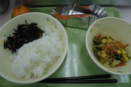 7月14日(水)の給食 公開日 2021/07/14 更新日 2021/07/14 今日の給食 ☆今日の献立 ごはん 鮭のレモン醤油 ひじきの炒め煮 カリカリじゃこサラダ 冷凍ミカン 牛乳 いいね(0)