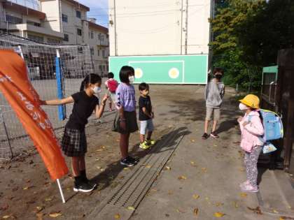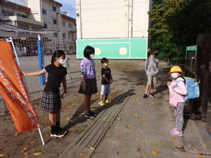 第二小学校では毎学期、挨拶運動に取り組んでいます。
