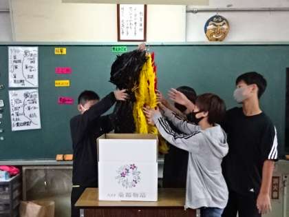 プレゼントボックスの染色とデザインは、市内にある「藤本染工芸」にお願いして作っていただいたものです。