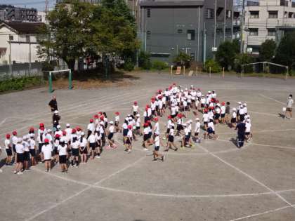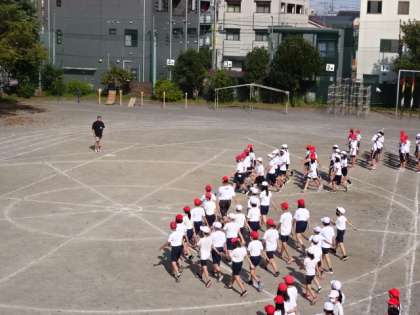音楽に合わせて、校庭の中央に進みます。