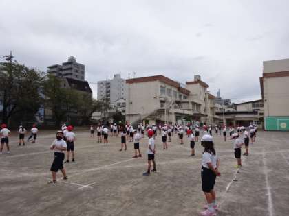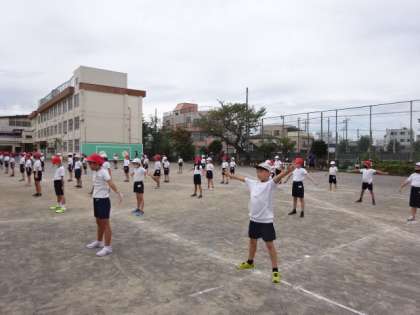 3・4年生の子供たちが運動会の表現運動の練習中です。