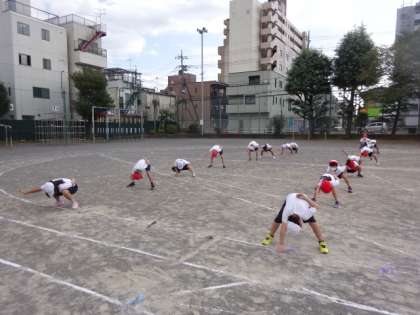 3・4年生の子供たちが表現運動の練習中です。