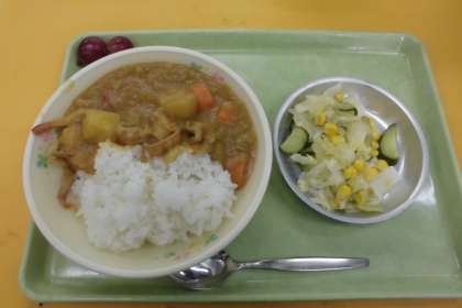 の家庭や給食で食べられているホッキ貝カレーを食べました。