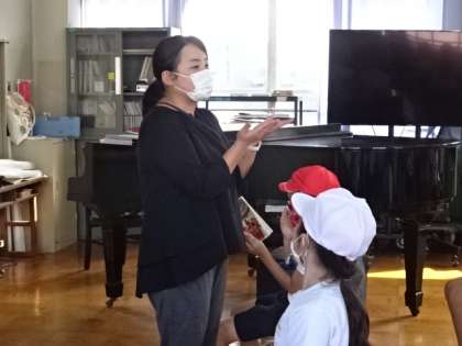 今まで習得した「レ、ド、シ、ラ、ソ」の音を使って、楽曲を演奏することがねらいです。