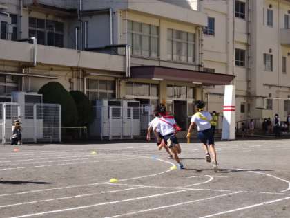 アンカーは校庭を1周半走ります。