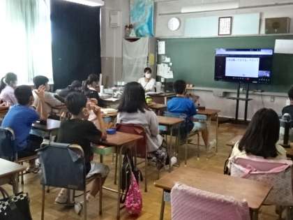 全児童が集まって全校朝会をしたり、児童集会をしたり。