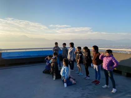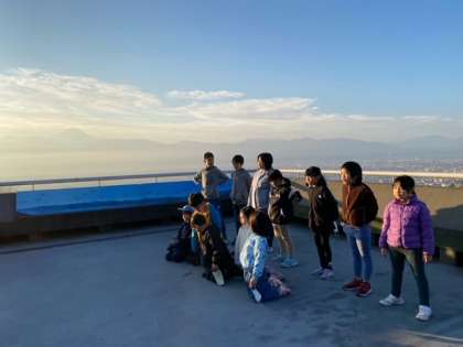 屋上で記念写真を撮ります。