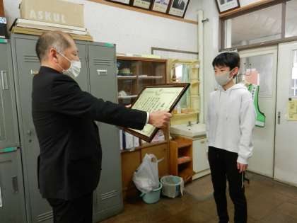 校長「第二小学校が表彰されました。おめでとうございます。」