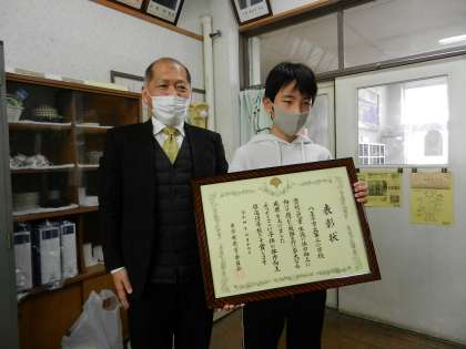 第二小学校を代表して、体育委員会の委員長に表彰状を受け取ってもらいました。