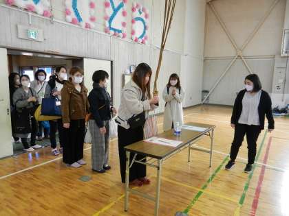 4年生の子供たちと保護者の方々が集まっています。