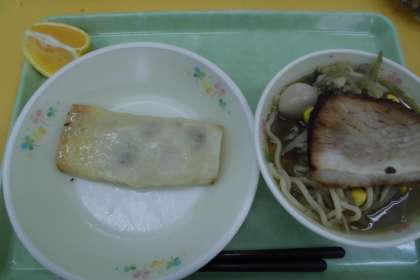 ☆今日の献立 八王子ラーメン ポテトぎょうざ でこぽん 乳飲料