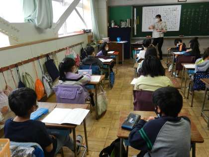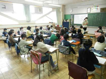時間講師の先生による授業です。子供たちは楽しそうです。