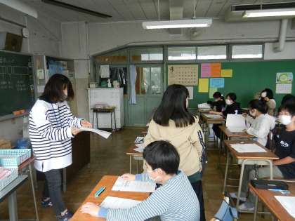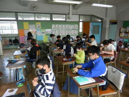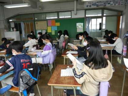 6年生の教室では「全国学力・学習状況調査」が終了し、質問紙調査に取り組むところです。