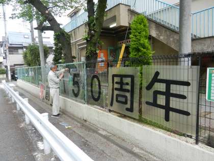今週末の学校公開では「祝 創立150周年」の看板を、ぜひご覧ください。