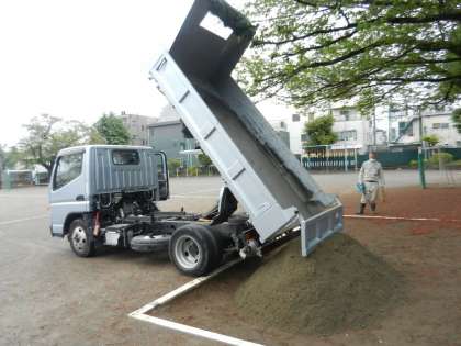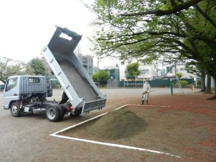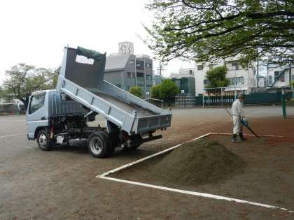 雨、風等の影響で砂場の砂が少しずつ減ってきていました。