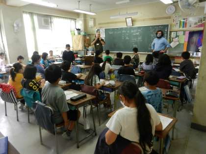 子供たちはALTとの会話を楽しんでいます。すごい!