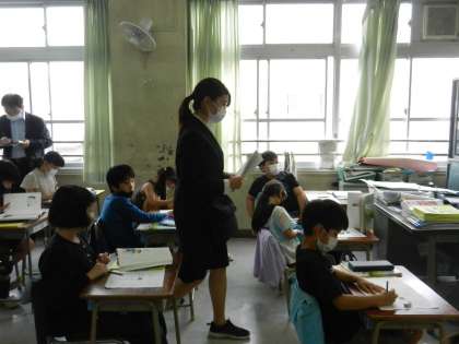 この日の授業は教育実習生が行っています。