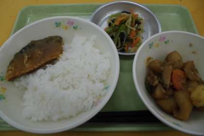 ☆今日の献立 ごはん さばのおろしソース 筑前煮 野菜のおかか和え 牛乳