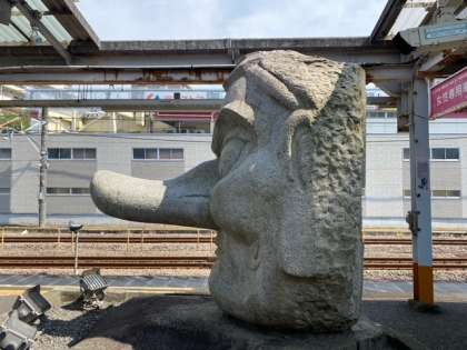 駅の前方に天狗の石像がありました。大きい!