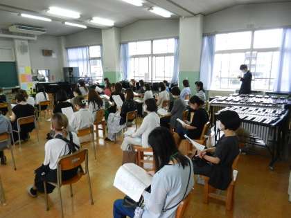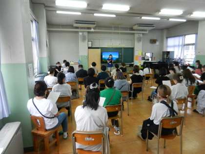 音楽室では、6年生で実習を行っている「東京教師養成塾生」の紹介や副担任からの話もお伝えしました。