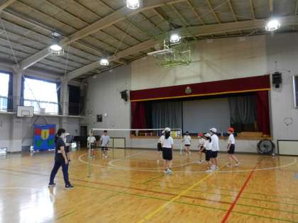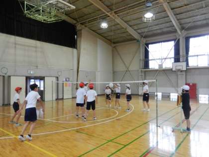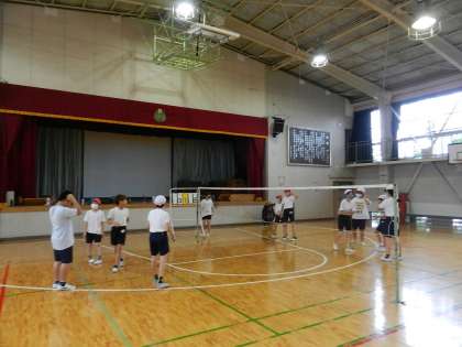 5年生の子供たちが「キャッチボールバレー」の試合中です。