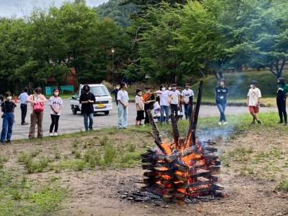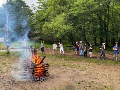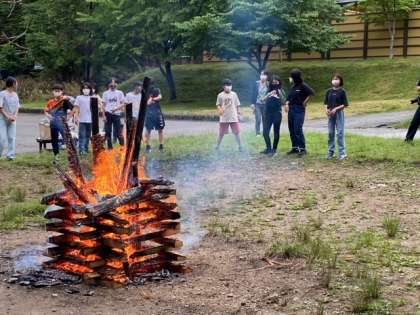 明るいうちに行うキャンプファイヤーも、なかなか面白いです。