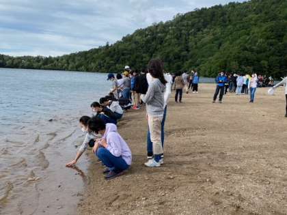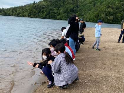 湯の湖の水は、冷たいね。