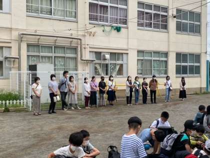 たくさんの保護者の方々、先生方も見送りに来てくださっています。