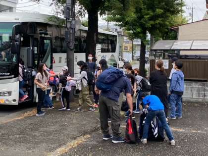 バスに乗り込みます。