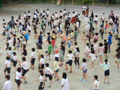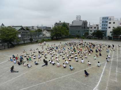 第二小学校の運動会では毎回、二小ストレッチを行っています。