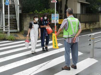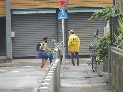 毎日、町会の方々が輪番で子供たちの登校を見守ってくださっています。
