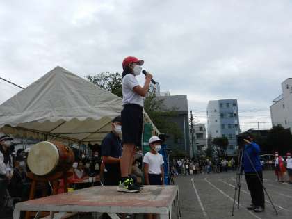 優勝杯、準優勝杯の返還です。紅白応援団長から学校長に変換されます。今年はどっちだ?
