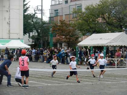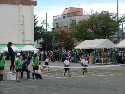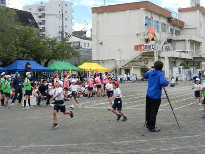 校庭の真ん中をまっすぐに走ります。みんな、すごいぞ!