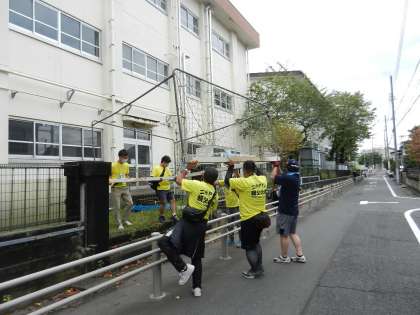PTAの方々、おやじの会の方々と一緒に作業を行います。
