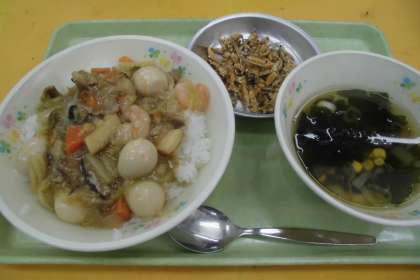 ☆今日の献立 ごはん 八宝菜 わかめスープ ごまめナッツ 牛乳