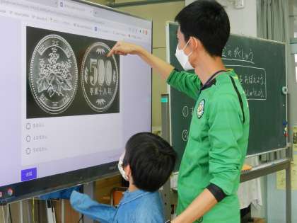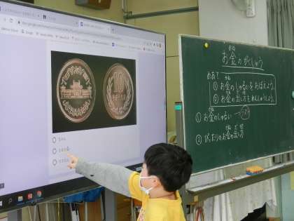 硬貨を組み合わせ、指示された金額のお金を出すことができることねらいです。