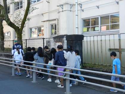 中庭に4年生の子供たちが集まります。