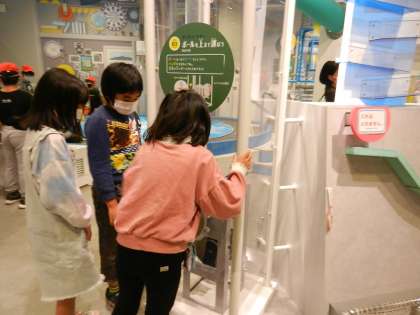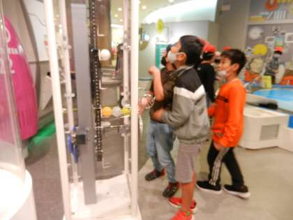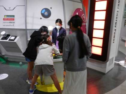 「星の動き」について学習した後は、サイエンスドームの中にある様々な機械を体験します。
