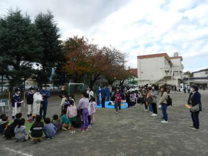校庭に準備していただいた「防災」に関する体験コーナー。