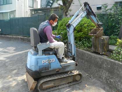 重機を使い、耐火金庫を持ち上げます。