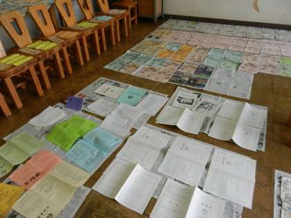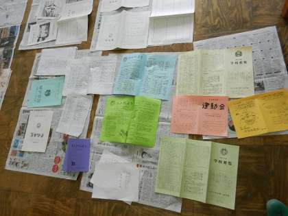 当時の学校だより、PTA広報誌(にじのはし)、運動会パンフレット、当時の新聞…。
