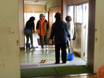 モップ、雑巾等でほこりや汚れを取り除きます。